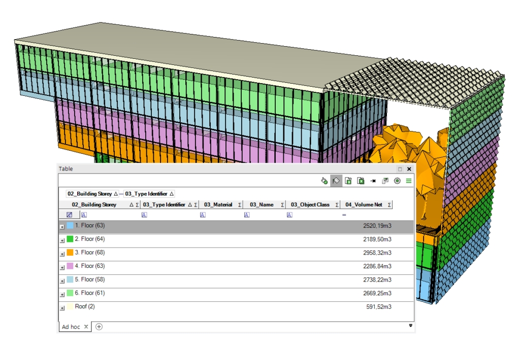Les données peuvent être sélectionnées et mises en évidence à partir de la 3D à travers toutes les palettes. Même colorisé. Ou vous pouvez accéder à un sous-ensemble de données en sélectionnant des objets de la 3D.