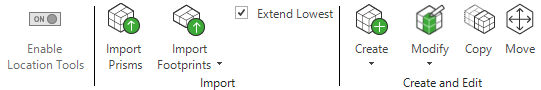 Créer : vous pouvez créer des prismes de localisation à partir des étages du bâtiment que vous avez déjà dans votre modèle ou à partir des plans de détourage que vous avez ajoutés à la fenêtre 3D.