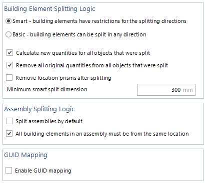 La division intelligente permet une certaine tolérance dans les prismes de localisation en empêchant la création de petites pièces ou en divisant les éléments de construction dans le mauvais sens.