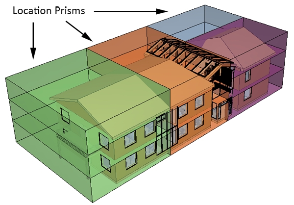 Afin de définir des emplacements, vous devez disposer de prismes de localisation 3D. Les prismes de localisation sont des objets 3D qui peuvent avoir n'importe quelle forme, c'est-à-dire qu'ils ne se limitent pas à des "boîtes à chaussures". Il existe plusieurs façons d'obtenir des prismes de localisation dans votre modèle